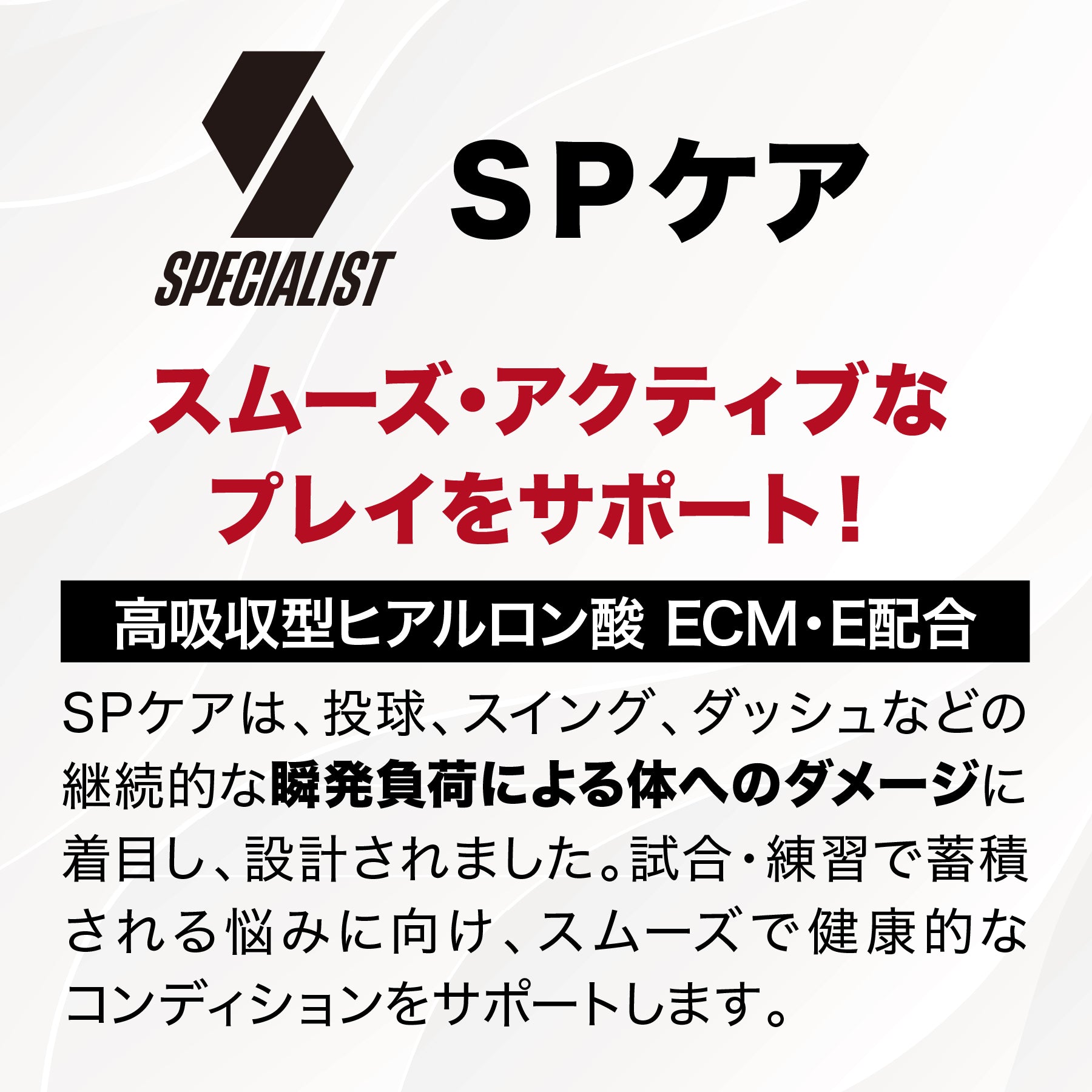 ベースボールアスリートのSPECIALISTとは、常にベストなパフォーマンスとメンテナンスを、そのポジションやシーンに合わせて行える人のことです。